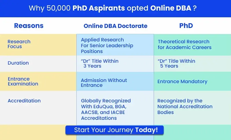 - Online DBA Doctorate is much more flexible and suitable than all the PhD programs for working professionals.